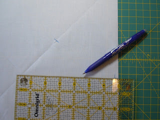 Cut one 12 1/2" x 32" rectangle of the sashing fabric. Sew together the long sides using a 1/4" seam. Crosscut into twelve 14 1/2" x 2 1//2" rectangles. Sew these end to end.